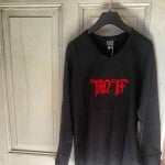 Impression petit format du logo "Mylène Farmer" en gris au dos.
